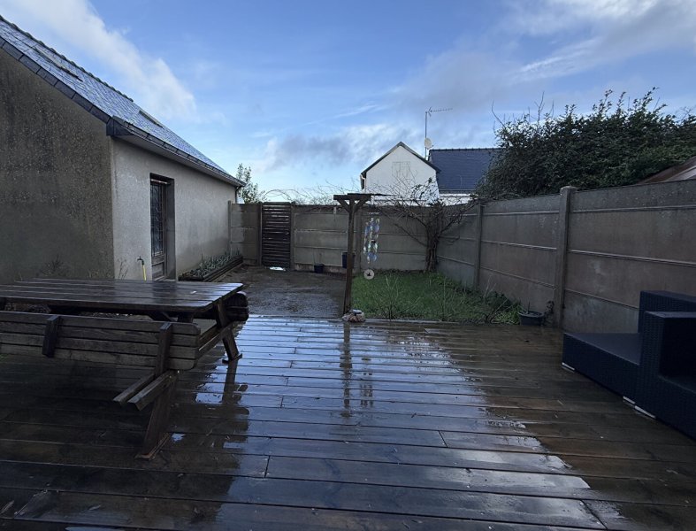 Un jardinet clos avec terrasse en bois.