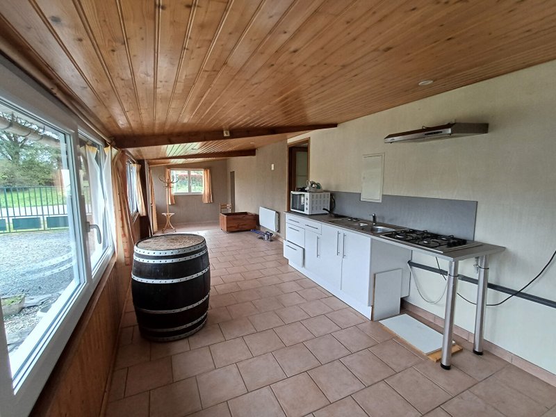 Elle se compose d'une pièce de vie avec poêle à bois, d'une cuisine indépendante aménagée et équipée, d'un dégagement desservant un WC, d'une salle d'eau , ainsi que d'une véranda avec cuisine d'été parfaite pour recevoir ou profiter des beaux jours.