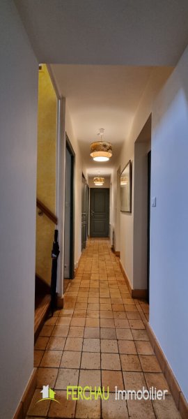 Au rez de chaussée : cuisine aménagée (éléments haut et bas) et équipée (hotte, four, plaques à induction, lave-vaisselles et réfrigérateur), salon/salle à manger avec cheminée insert, couloir avec de nombreux rangements desservant 3 chambres dont 2 avec placards et 1 avec coin douche et lavabo, salle de bains avec WC, WC indépendant avec lave-mains.