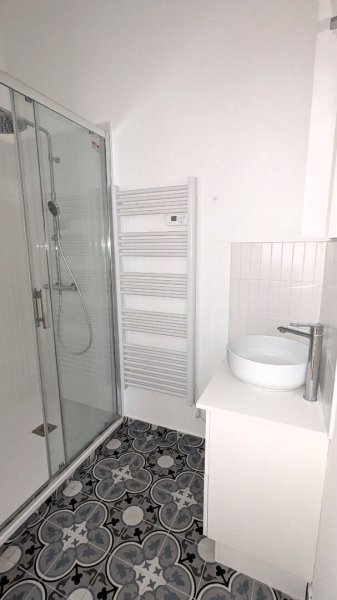 Il comprend : une entrée sur un salon, une pièce de vie donnant accès à une cuisine aménagée et équipée (hotte - plaques - four - lave-vaisselle - réfrigérateur / congélateur), un WC indépendant.