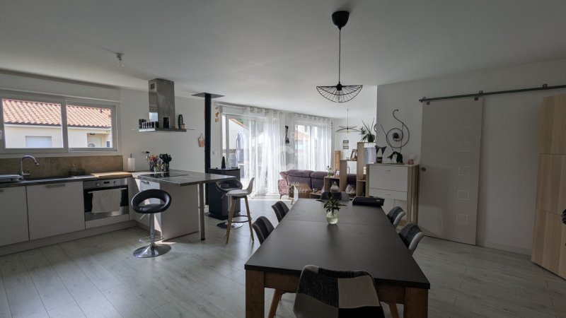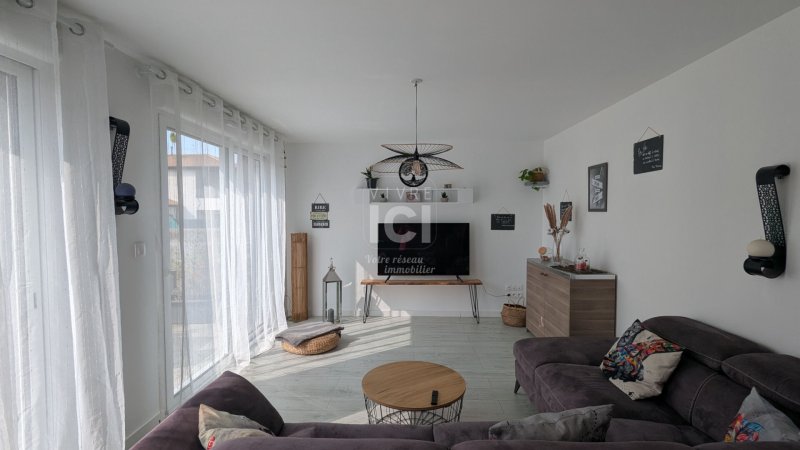 Vous bénéficierez d'une grande pièce de vie de 50.92m² baignée de lumière, avec son poêle à granules et une cuisine ouverte entièrement aménagée et équipée (hotte - plaques de cuisson - four - lave-vaisselle), le tout avec un accès direct sur la terrasse et le jardinet, entièrement clos
