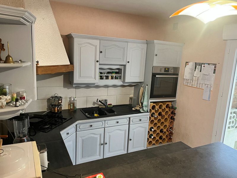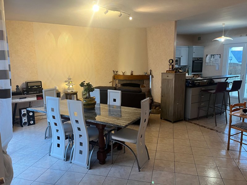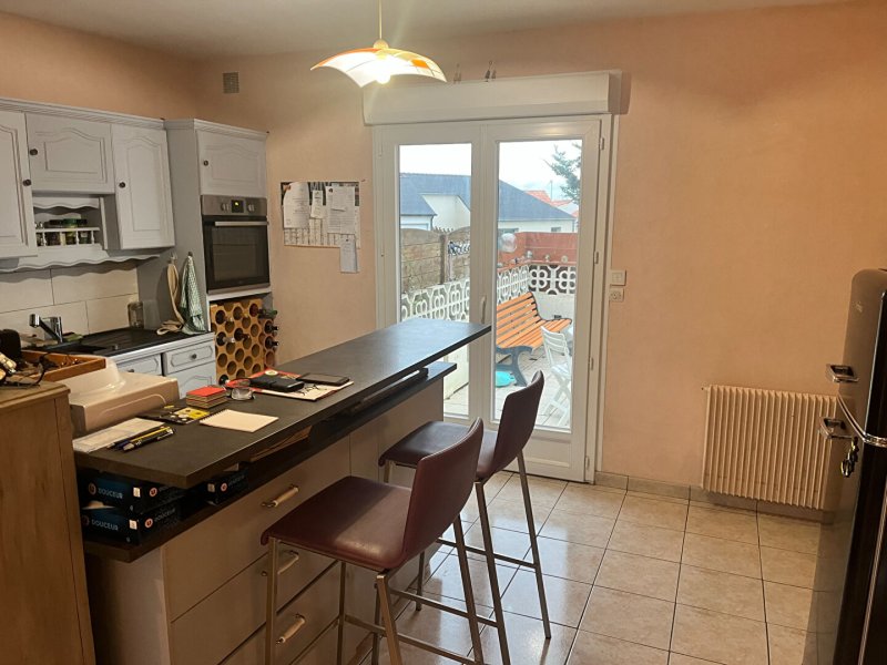 A louer maison à la nantaise vous offrant un salon séjour avec cheminée , une cuisine ouverte aménagée et partiellement équipée , deux chambres , wc , salle de bains , à l'étage deux chambres , mezzanine .