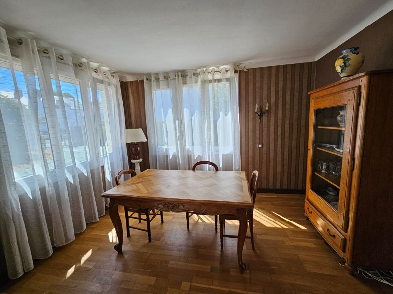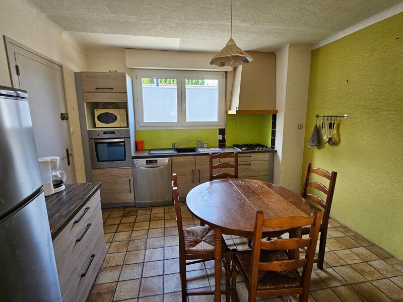 Maison meublée de plain pied en plein coeur du centre de Montoir-de-Bretagne composée d'une entrée, un séjour, une salle à manger, une cuisine aménagée et équipée, une arrière cuisine, une véranda, 4 chambres, une salle d'eau et un WC.