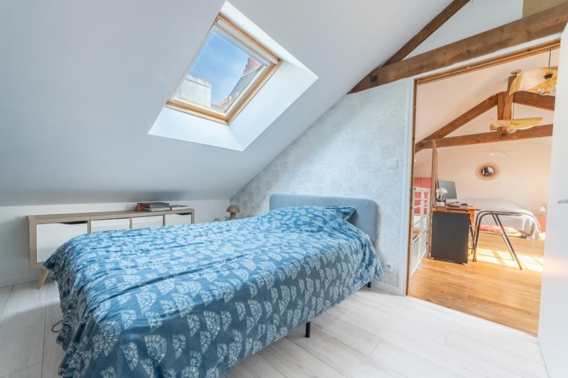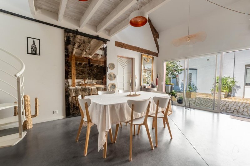 Au calme absolu, en retrait complet de la rue, maison type loft meublée en excellent état, comprenant: réception cathédrale avec cuisine équipée ouverte de plain pied sur cour privative, vaste garage -lingerie, 2 chambres dont une en mezzanine, salle de bains avec baignoire et douche et 2 WC. Un parking à 50 mètres complète ce bien de qualité.