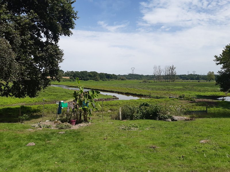 A 5 mn du centre, en impasse, maison en pierre situé dans un corps de ferme offrant salon séjour cuisine de 33 m², une chambre et une salle d'eau/wc au rez de chaussée ; palier, deux chambres à l'étage. Dépendances. Beau jardin avec une petite partie boisée et surtout une vue imprenable sur les marais.