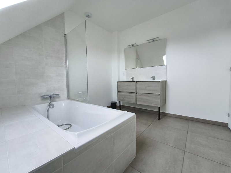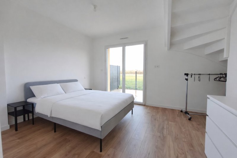 Belle maison récente comprenant au rez-de-chaussée : une entrée, une pièce de vie avec une cuisine aménagée équipée, une chambre, une salle d'eau avec toilette, une buanderie.