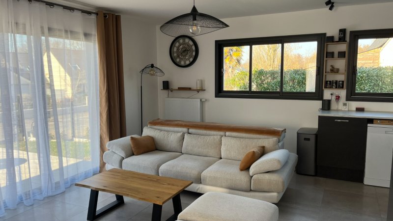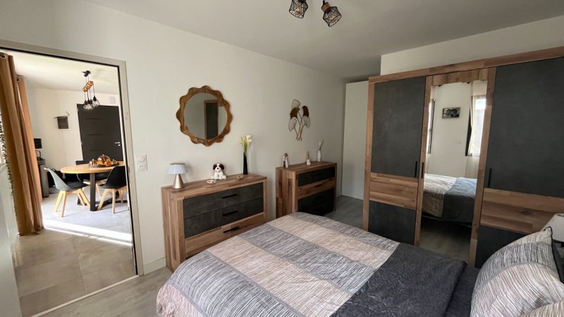 Maison de 2021,meublée, composée d'une entrée avec placard, une belle pièce de vie lumineuse avec cuisine aménagée et équipée, une suite parentale au rez de chaussé.