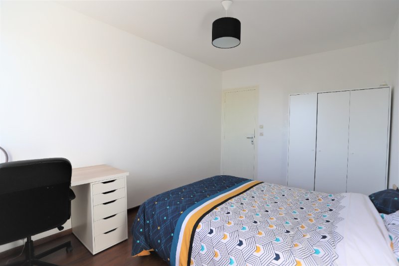 La chambre disponible (10,30 m²) est meublée et équipée d'une armoire, d'un lit (140*190) et d'un bureau.