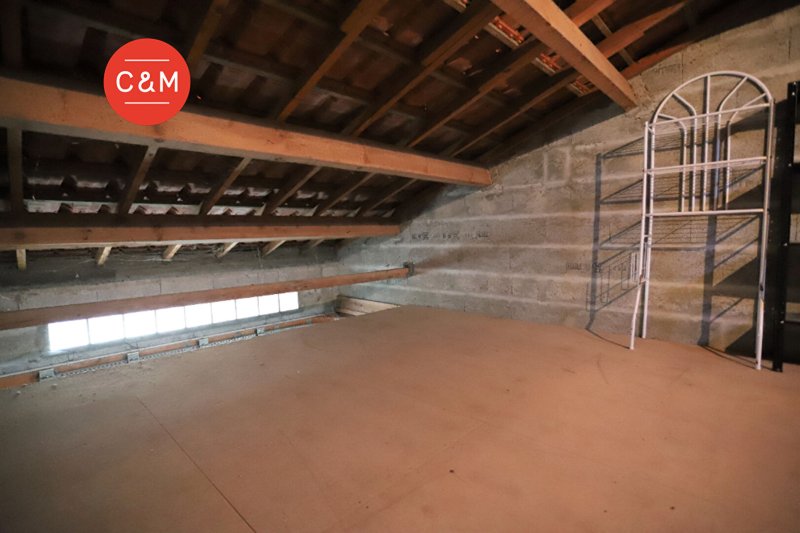 Sur un terrain d'environ 478 m², maison de plain-pied comprenant un double salon-séjour, une cuisine (bloc évier), trois chambres avec placards, une salle de bains (douche-baignoire), un wc séparé. Garage attenant aménagé d'une mezzanine et d'un wc.