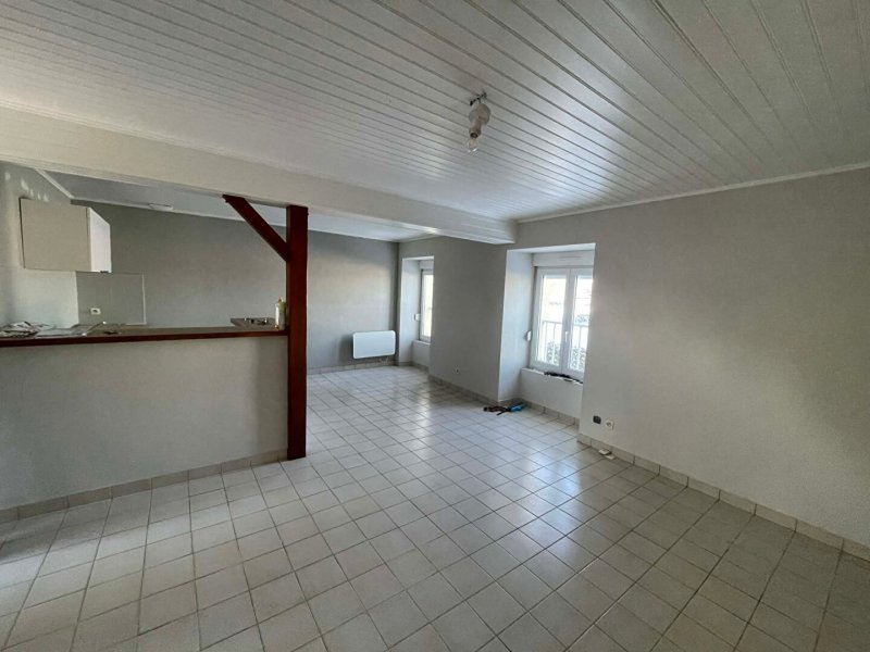 Maison à louer comprenant une pièce à vivre avec cuisine aménagée ouverte.