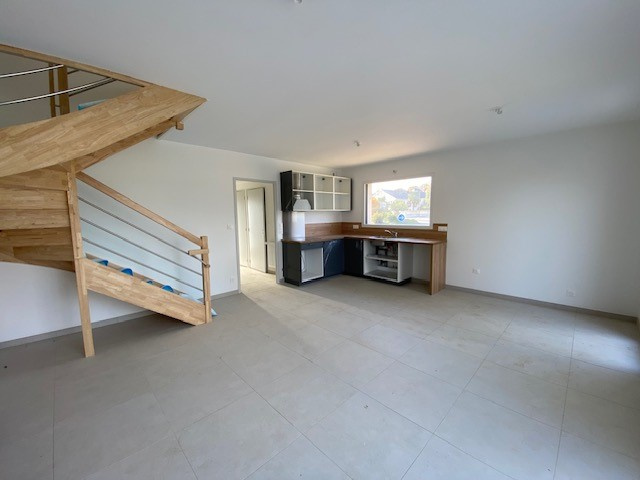 Maison neuve en fin de construction comprenant: une entrée, une belle pièce de vie lumineuse avec coin cuisine meublé et équipé d'une hotte, une buanderie, un wc, accès direct au garage, à l'étage, un palier désservant 4 chambres, une salle de bains, wc séparés. Petite terrasse et jardin clos. Huisseries alu double vitrage avec volets. Chauffaeg par pompe à chaleur CHARGES = TOM + ENTRETIEN PAC « Les informations sur les risques auxquels ce bien est exposé sont disponibles sur le site Géorisques : www.georisques.gouv.fr ».