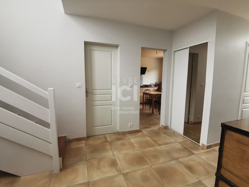 A louer à Sautron, dans un secteur calme et à proximité du centre, des commodités et transport, maison meublée de type T4 comprenant une entrée cathédrale avec placard, une cuisine aménagée et équipée (plaque de cuisson, hotte, four, lave-vaisselle, réfrigérateur / congélateur), un séjour traversant avec cheminée, donnant sur la terrasse, et wc séparé.