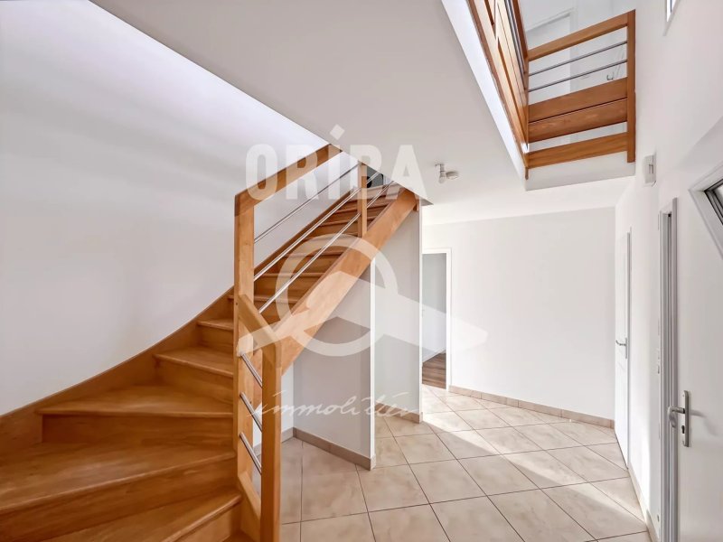 Grand séjour de 40m², cuisine ouverte aménagée et équipée . Terrasse carrelée. Jardin.
