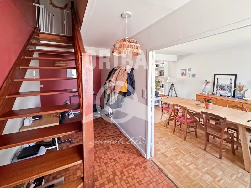 Elle se compose d'une entrée, d'un WC, d'un grand salon salle à manger traversant et lumineux, d'une cuisine aménagée et équipée ainsi que d'un garage avec un espace buanderie. À l'étage, trois chambres ,un WC et une salle de bains complètent l’ensemble. L'extérieur dispose d'un beau jardin clos et bien exposé, idéal pour profiter des beaux jours. Proche des transports et des commerces, cette maison allie confort et praticité.