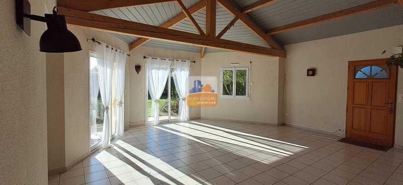 Saint Mars de Coutais, en plein coeur d'un lotissement à deux pas des écoles, belle maison à louer comprenant entrée sur grande pièce à vivre de 55m² comprenant espace salon, séjour et cuisine aménagée, un dégagement desservant 3 chambres avec rangements, salle de bains avec douche et baignoire, wc indépendants. Un cellier et un grand garage avec grenier. Terrasse et jardin.