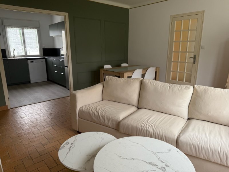 Baisse de prix ! À louer Maison meublée 67 m2 Maison d'habitation meublée comprenant : entrée, séjour, cuisine équipée (hotte, plaques, four, lave-vaisselle, lave-linge, sèche-linge), deux chambres, salle d'eau, WC. Garage attenant + garage indépendant. Jardin clos. Chauffage gaz de ville. Surface habitable : 67 m2Loyer mensuel : 890 EURDépôt de garantie : 1 780 EURHonoraires de location : 737 EUR Contact : Céline PELTIER 06 23 84 27 49 www.acpimmobilier.fr