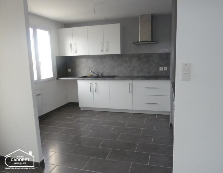 Maison 4 pièces 91m² - THARON - Le cabinet CADORET Immobilier vous propose : À louer à THARON, une maison individuelle 4 pièces d'environ 90 m². Elle comprend une entrée donnant sur un salon/séjour avec cuisine ouverte aménagée et équipée : plaques à induction et hotte). Un dégagement avec placard desservant trois chambres, dont deux avec placards, une salle d'eau et des WC séparés. S'ajoute à cela une terrasse, un jardin et un garage de 23,75 m² avec mezzanine. LOYER : 1000.00€ - DÉPÔT DE GARANTIE : 1000.00€ - HONORAIRES : 700.00€ dont 270€ d'état des lieux. LIBRE au 8 JUIN 2026.