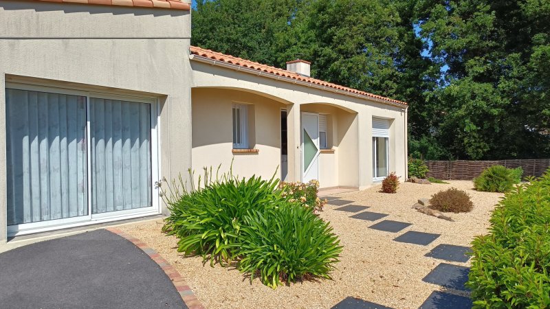 SAINT MICHEL CHEF CHEF location maison de plain-pied 5 pièces dans quartier pavillonnaire, 3 chambres et un bureau, séjour double traversant, cuisine ouverte sur le séjour aménagée et en partie équipée (four, plaques gaz, hotte, réfrigérateur), une salle de bains avec baignoire et douche, sèche-serviettes, un cellier avec emplacements machines à laver, une véranda de 15 m2 non chauffée, un garage de 35 m2 avec porte électrifiée. Puits avec pompe de relevage. Jardin paysagé. Compostes. DPE C - GES A. Estimation des coûts annuels d'énergie du logement entre 1190 EUR et 1670 EUR. Moyen de chauffage climatisation réversible et convecteur, cheminée avec insert. Loyer mensuel 1250 EUR auquel s'ajoute des charges de 25 EUR par mois (ordures ménagères). Les risques auxquels le bien est exposé sont disponibles sur le site www.georisques. Caution de 1 250 EUR. Honoraires charge locataire 643,50 EUR dont 148,50 EUR d'état des lieux. Mandat 1323.