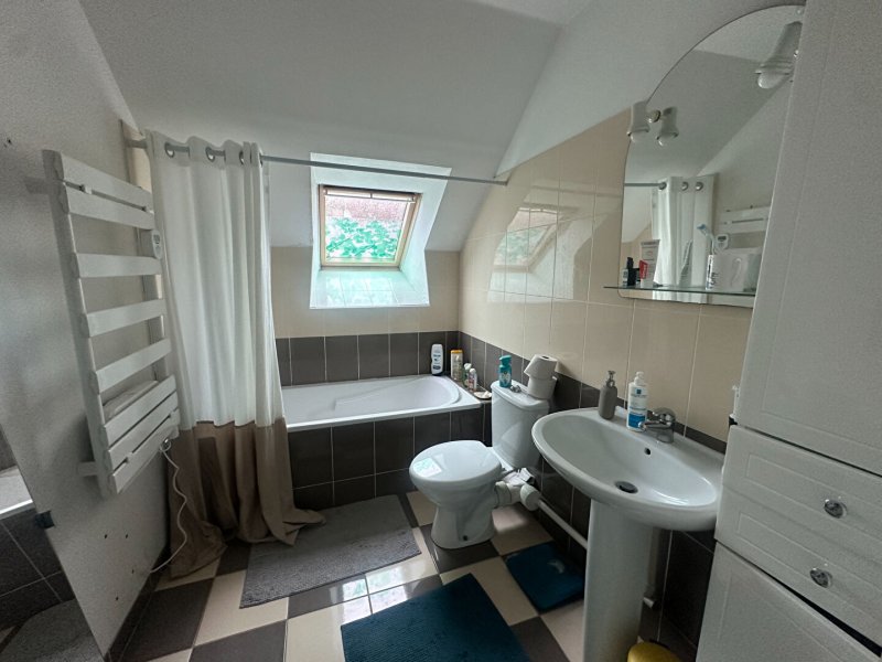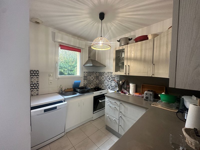 Maison type 4 d'environ 70.48m² (91.97 m2) au sol, située dans une allée au calme, comprenant au rez-de-chaussée, : un salon-séjour avec coin cuisine aménagée et équipée, un WC, et un garage. A l'étage : un couloir dessert 3 chambres et une salle de bains avec WC.