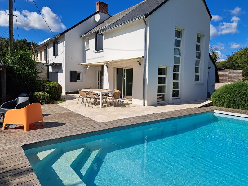 Pour tout renseignement et demande de visite, merci de contacter l'agence FOURNY de TREILLIERES. A 2 mn du périphérique nantais, belles prestations pour cette maison familiale et chaleureuse entièrement rénovée offrant une entrée avec vestiaire, un salon avec une cheminée et insert, une salle à manger ouverte sur une grande cuisine a/e et son espace repas, une buanderie et une cave. A l'étage, coin lecture, 4 chambres dont 1 avec salle d'eau privative, 1 salle d'eau et 1 bureau. Grand garage et dépendance. Joli jardin paysagé avec piscine chauffée et sécurisée (volet roulant) et traitement au sel et son espace détente avec SPA. A louer au 05/01/2026. Charges mensuelles de 100 ? comprises (contrat annuel entretien piscine, chauffage, ramonage et climatisation). Dépôt de garantie 1 600 ? Honoraires locataires 1 152 ? TTC (honoraires état des lieux compris) Les informations sur les risques auxquels ce bien est exposé sont disponibles sur le site géorisques www.georisques.gouv.fr - FN_1763203263