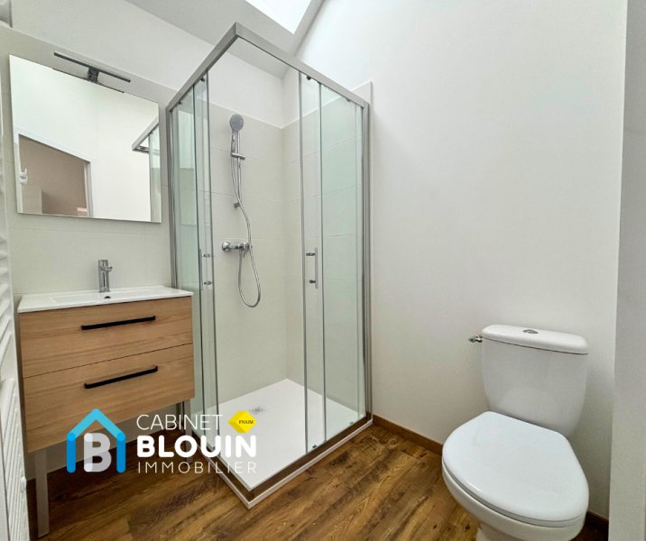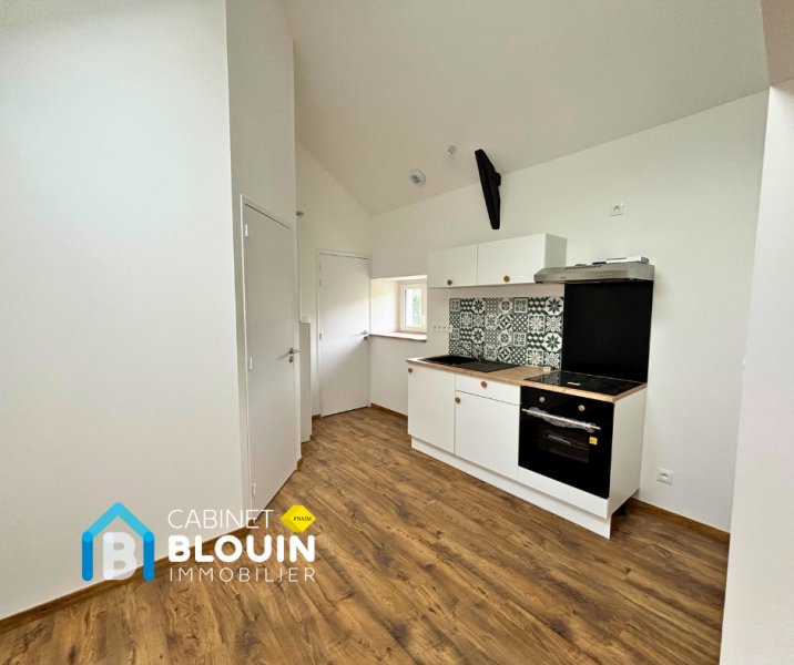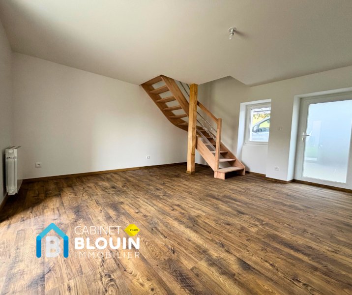 Au calme et à proximité du centre-ville de Blain, charmante maison de type 2 comprenant : un salon/séjour lumineux, une cuisine aménagée et équipée (hotte, four, plaque vitrocéramique) ouverte sur la pièce de vie, une salle d'eau avec sèche serviette électrique et W.C.