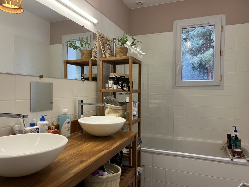 VERTOU, rue des Fraîches. A louer avec le Cabinet Guémené, une maison T5 d'une surface de 112,44 m². Elle comprend au rez-de-chaussée une entrée ouverte sur une grande pièce de vie avec espace salle à manger et cheminée, une cuisine indépendante aménagée et équipée (plaque de cuisson, hotte et four) et un wc. Au premier étage quatre chambres, une salle de bains, une salle d'eau et un WC. Annexes : un grand garage et un jardin avec terrasse. Chauffage et production d'eau chaude individuel électrique. Libre le 21 novembre 2025. Loyer : 1206 + 25 de provision pour charges (taxe d'ordures ménagères), régularisation annuelle. Honoraires de 1 206 TTC à la charge du locataire comprenant 337 TTC pour l'état des lieux. Loyer de base 1206 /mois. Provision sur charges 25 /mois, régularisation annuelle. Dépôt de garantie 1 206 . Classe énergie D, Classe climat B Montant moyen estimé des dépenses annuelles d'énergie pour un usage standard, établi à partir des prix de l'énergie de l'année 2021 : entre 1715.00 et 2321.00 . Les informations sur les risques auxquels ce bien est exposé sont disponibles sur le site Géorisques : georisques.gouv.fr.