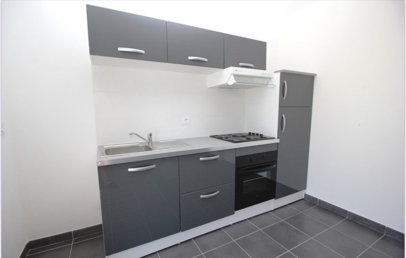 Cuisine américaine équipée (plaque vitrocéramique, hotte, frigo-congélateur, four)
