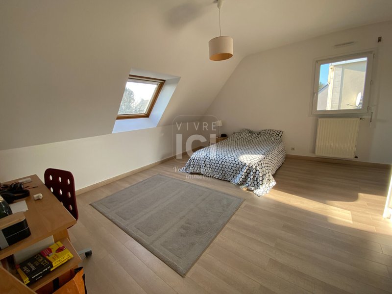 A louer à Carquefou, une maison de type 6 d'une superficie de 130m² offrant au rez-de-chaussée une entrée, une pièce de vie, une cuisine aménagée et équipée, un cellier, un dégagement desservant un WC et une chambre avec une salle d'eau.