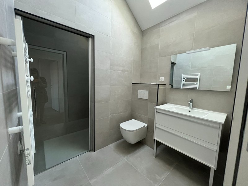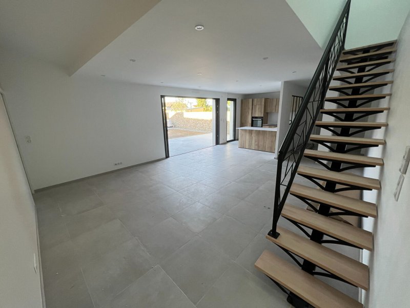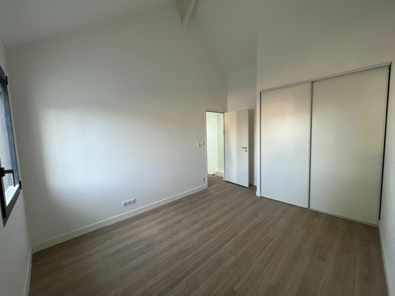 A louer, dans le bourg de Carquefou, une maison neuve d'une superficie de 132m² offrant au rez-de-chaussée, une entrée, un cellier, un salon-séjour, une cuisine aménagée et équipée (hotte, plaque de cuisson, four, lave-vaisselle, réfrigérateur), une buanderie, un dégagement desservant 2 chambres avec dressing, une WC, une salle de bain avec douche.