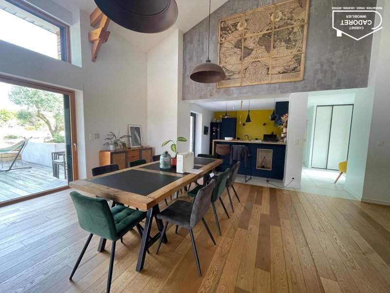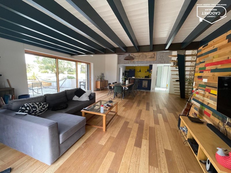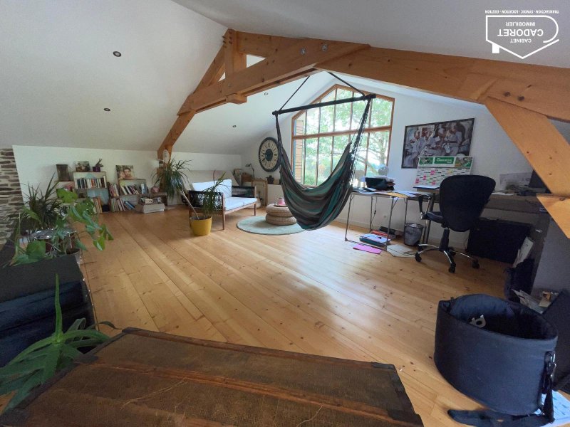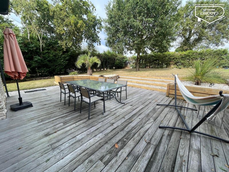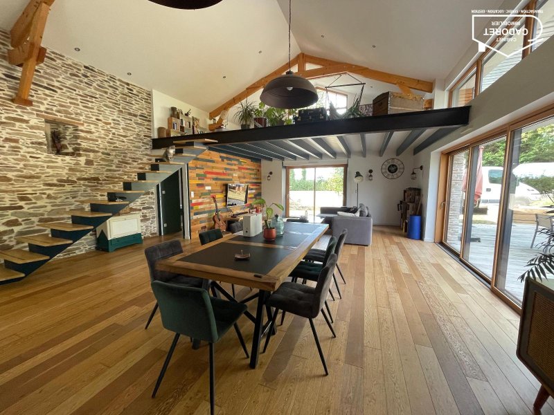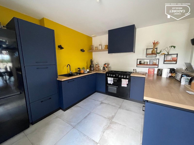 CHAUVE Maison meublée 4 pièces 150 m² - Le Cabinet CADORET Immobilier vous propose : A Chauvé, une maison meublée T4, de 150 m², sur deux niveaux, comprenant au rez-de-chaussée une entrée sur salon / séjour et cuisine équipée (four, plaques, hotte, lave-vaisselle et réfrigérateur/congélateur), une chambre avec dressing et salle d'eau, ainsi qu'une mezzanine. A l'étage, un couloir desservant une chambre, une salle de bain, une buanderie et des WC. S'ajoute à cela une terrasse et un garage. Un espace gravillonné sur le devant de la maison.