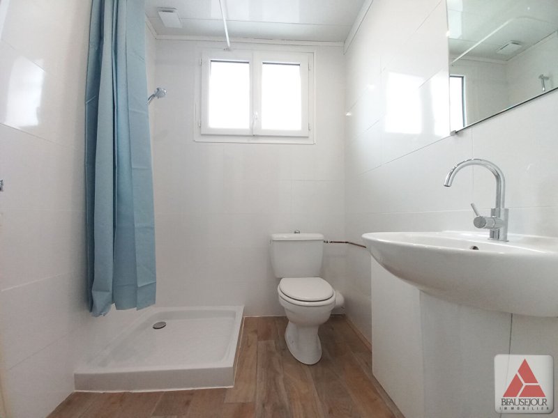 Maison de plain-pied entièrement rénovée avec goût comprenant : une cuisine aménagée ouverte sur salle a manger, une salle d'eau avec WC, un séjour et une chambre.