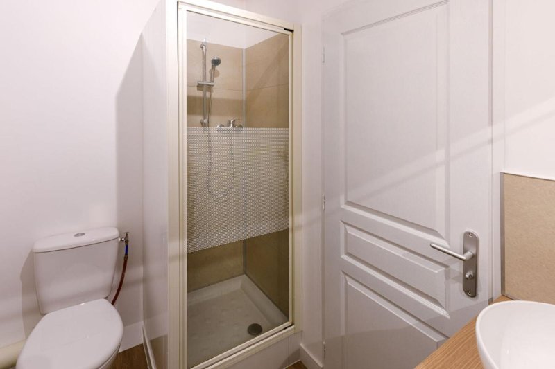 A l'étage, une chambre avec rangement et salle d'eau avec toilettes.