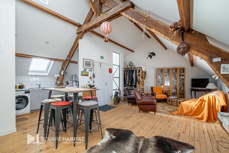 Square habitat vous propose, en exclusivité, A 300 mètres des remparts de la cité médiévale de Guérande, ce magnifique appartement type T3 entièrement rénové en 2019, au charme authentique, verrières, poutres, parquet.