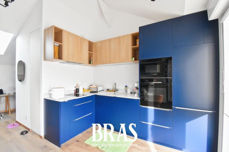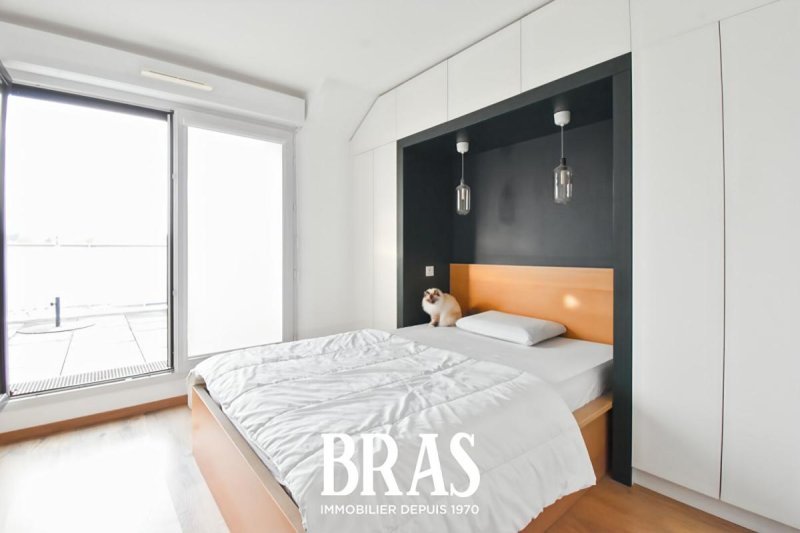 Vous entrerez sur un espace avec rangement, suivi d'une pièce de vie lumineuse avec toit cathédrale, et des aménagements sur mesures sur toute la hauteur. Une cuisine fonctionnelle entièrement aménagée et équipée (plaques de cuisson, hotte, four, lave-vaisselle, réfrigérateur/congélateur), accès à une superbe terrasse de 29m² exposé Sud avec vue dégagée et sans vis à vis!