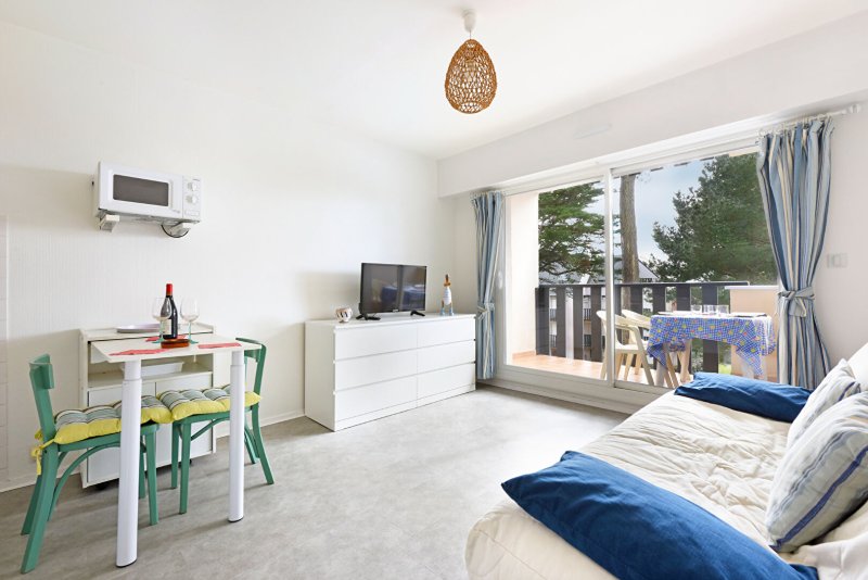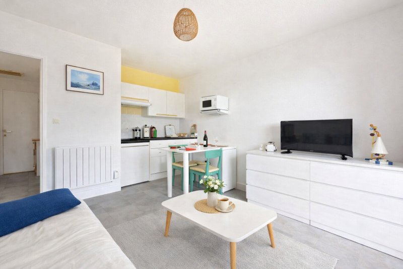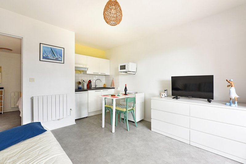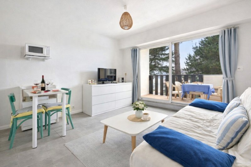 Charmant appartement entièrement rénové et entretenu, en excellent état, bénéficiant d'une belle exposition Sud, dans un environnement boisé et calme, à l'abri des vis à vis. La copropriété est à 10mn à pied de la plage, et offre l'avantage de très beaux espaces verts et d'une piscine commune. Entrée cabine, salle d'eau/wc en excellent état, pièce de vie avec kitchenette A/E se prolongeant sur le balcon. Ce bien est idéal pour vos escapades de bord de mer !