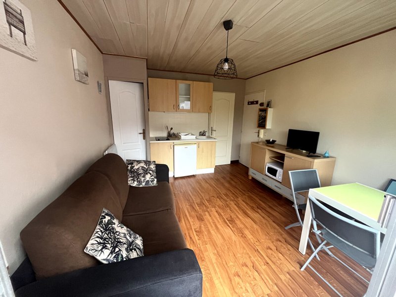 La Baule - Vieux Guézy, à seulement 10 min à pieds des plages, de la gare et des commerces de Pornichet, dans une résidence verdoyante avec piscine, au calme, dernier étage, studio avec coin cabine, séjour avec kitchenette équipée, donnant sur belle terrasse exposée ouest. Local vélo commun à disposition.