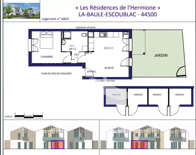 LA BAULE Le GUEZY- OPPOPTUNITE-PRIMO-ACCÉDANT- Emplacement idéal à 700 m de la Gare SNCF et des Commerces de PORNICHET, APPARTEMENT de 43 M² Hab en rdc. Entrée, cuisine ouverte sur le séjour, jardin privatif, salle d'eau et wc, 1 chambre, cellier et 1 parking. AIDE de 5000 € de la COMMUNE DE LA BAULE - SOUS CONDITIONS.