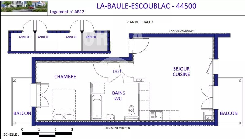 PRIMO ACCEDANT- NEUF VEFA- Le clos de l'Hermione. Emplacement idéal à 700 m de la Gare SNCF et des Commerces de PORNICHET, APPARTEMENT de 43.18 M² Hab. Entrée, cuisine ouverte sur le séjour, balcons, salle d'eau et wc, 1 chambres et parkings. Exposition sud. Frais de notaires réduits.