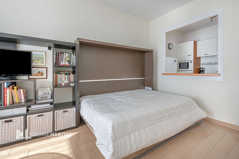 Il se compose d'une cuisine aménagée et équipée, ainsi que d'un agréable séjour ouvrant sur un balcon avec vue mer, une chambre avec placards . Une salle d'eau avec WC complète l'ensemble.