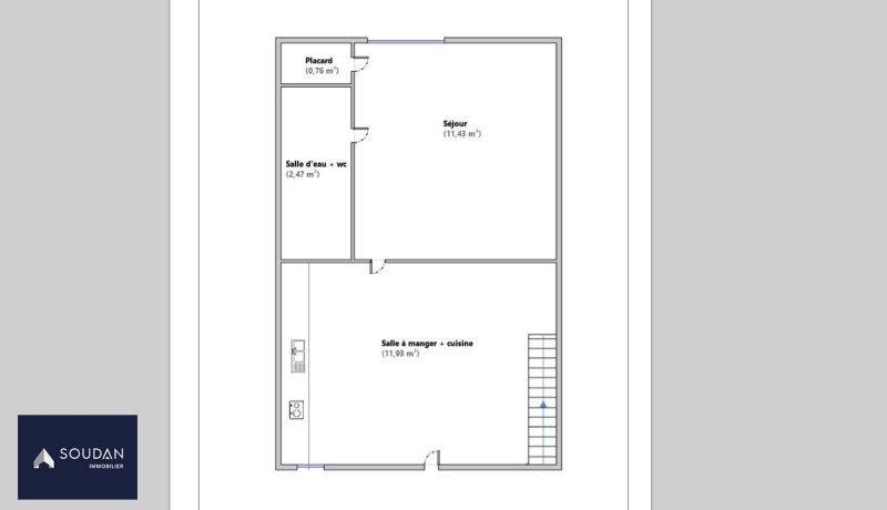 1er niveau : Cuisine aménagée-équipée, Salon, Salle d'eau-WC