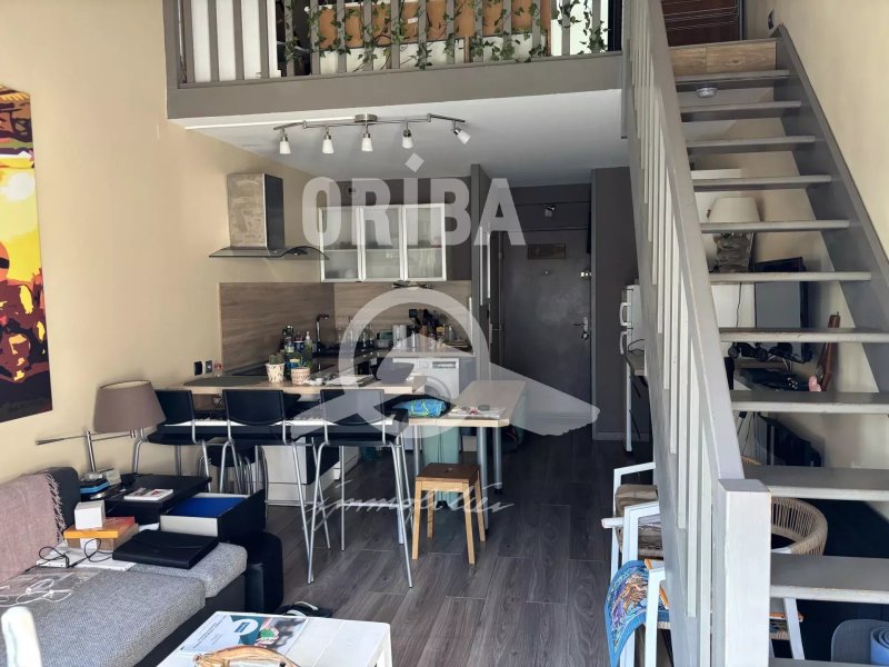VUE SUR PARC- PLEIN SUD- A 600M DE LA PLAGE. Charmant duplex T2 bis situé au 3ème étage d'une résidence avec piscine: Entrée avec placard, séjour avec cuisine aménagée et équipée, wc. Etage: mezzanine, chambre, salle de bains. +33 2 40 61 09 88 - +33 2 40 61 09 88