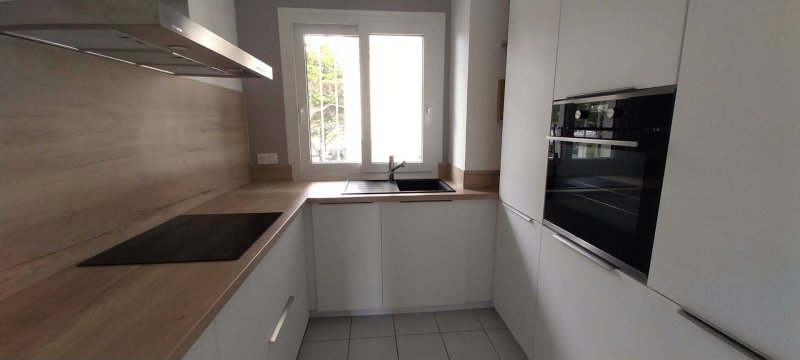 Entrée avec placard, cuisine aménagée et équipée, salle d'eau, deux chambres sur balcon face mer, séjour salon face mer .