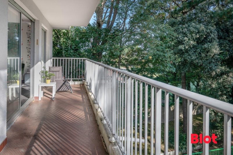 Vous apprécierez particulièrement le grand balcon de plus de 16 m², offrant une vue dégagée sur le parc arboré de la résidence, idéal pour profiter d'un environnement calme et verdoyant.