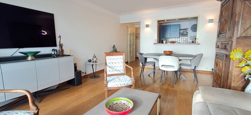 Bel appartement offrant une entrée avec placard, une cuisine semi-ouverte aménagée équipée sur un salon/séjour lumineux, le tout donnant accès à un balcon/terrasse avec une vue mer incroyable.