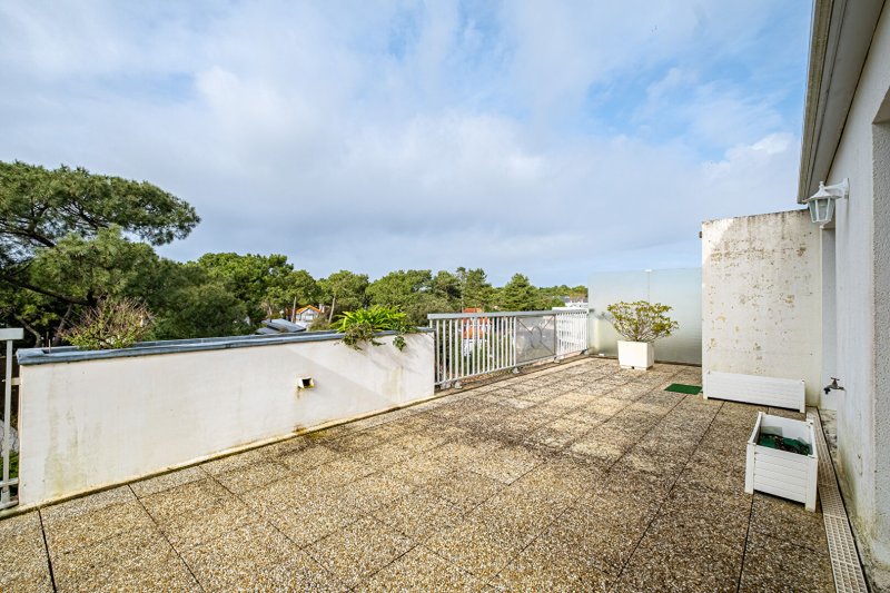 Il offre une belle pièce de vie baignée de lumière, ouverte sur une grande terrasse avec une vue dégagée sur les villas bauloises.