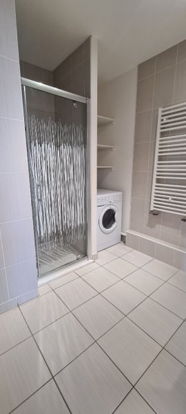 Un dégagement dessert un wc indépendant, une salle d'eau et une chambre avec placard avec un accès à la terrasse.