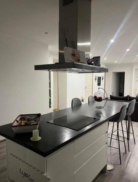 Grande pièce de vie conviviale avec cuisine équipée ouverte sur le salon