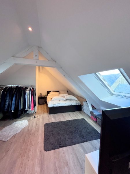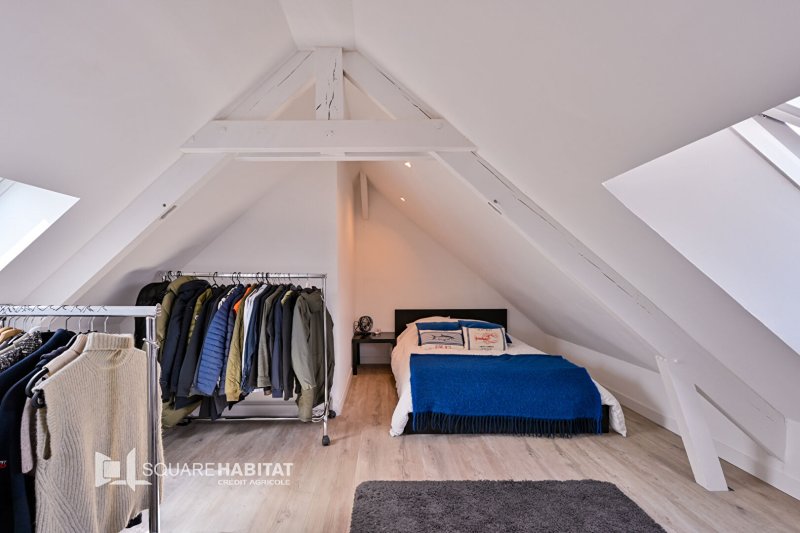 À l'étage, deux belles chambres sous combles vous accueillent, mêlant poutres apparentes et volumes optimisés, un véritable cocon plein de charme.
