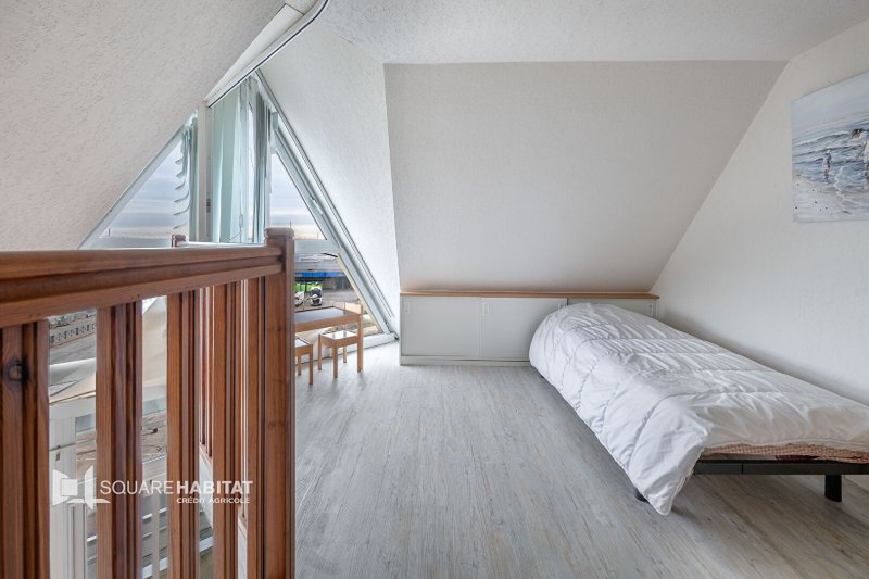 A l'étage : mezzanine et seconde chambre.