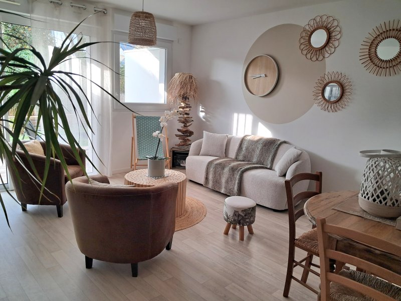 A 200m du bord de mer et du Centre Ville, dans résidence de 2021, appartement lumineux et en parfait état offrant: entrée, beau séjour avec cuisine aménagée et équipée ouvrant sur terrasse et jardinet privatif exposé Sud-Ouest et sans vis à vis, deux chambres, salle d'eau avec douche à l'italienne, wc séparé. Un local vélo individuel et 2 places de stationnement complètent le bien. Rare sur le marché!